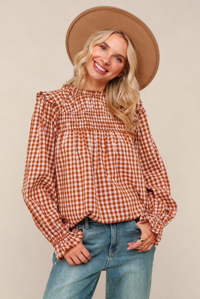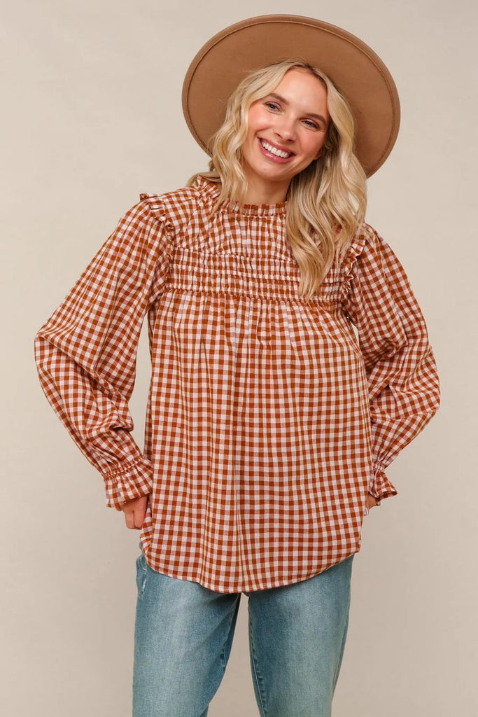 Pair it with your go-to denim for a timeless look that works from brunch to browsing the farmers market. Cute, versatile, and stylish- this gingham top is sure to become a new favorite in your closet.